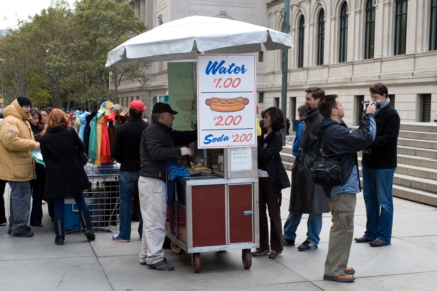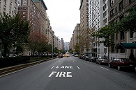 Danach war Mittag und wir hatten Hunger. Bevor wir uns zur Einkehr auf den Weg in Richtung Norden machten, kaufte J. bei einem Würstchenstand vor dem Museum seine erste Flasche Poland-Spring-Mineralwasser. Wir schlenderten am Guggenheim-Museum vorbei, das gerade eingerüstet war. Da ich die Architektur im Gegensatz zu der des Metropolitan Museums of Art nicht besonders eindrucksvoll finde, war ich nicht traurig, wegen der Sanierung keine Fotos des Äußeren machen zu können. Die Wohnhäuser in dieser Gegend gefielen mir hingegen ausgesprochen gut. Das Groß und Klein nebeneinander und die verschiedenen Epochen, die in den letzten rund 150 Jahren hier ihre Spuren hinterlassen haben, sorgen für eine große Vielfalt. Ich war überrascht, wie wenig neue Häuser hier stehen und, falls doch, wie angepasst sie sind. Hat die Bauhaus-Bewegung New York verschont? Davon kann man im kriegszerstörten und beim Wiederaufbau mehr oder weniger endgültig versauten Deutschland nur träumen.