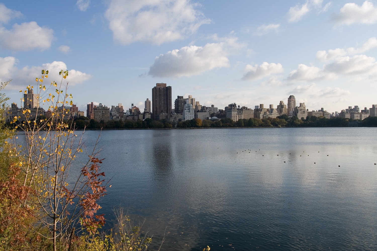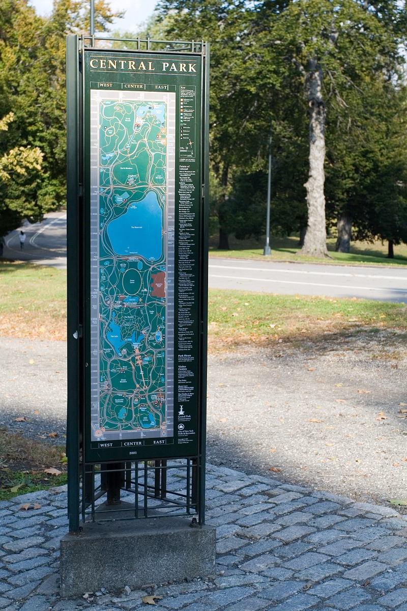 Vorerst gestärkt gingen wir in Richtung Central Park. Der Himmel war nun aufgerissen und die Sonne angenehm warm. Wir durchwanderten den Park in nördlicher Höhe und freuten uns über die vielen Eichhörnchen, die alle paar Meter herumstanden oder Nüsse vergruben. Ein Japaner — es kann eigentlich nur ein Japaner gewesen sein! — zog eine Mülltonne hinter sich her auf die Wiese, um sie vor einen jener herbstlich gefärbten Bäume zu stellen und zu dort fotografieren.