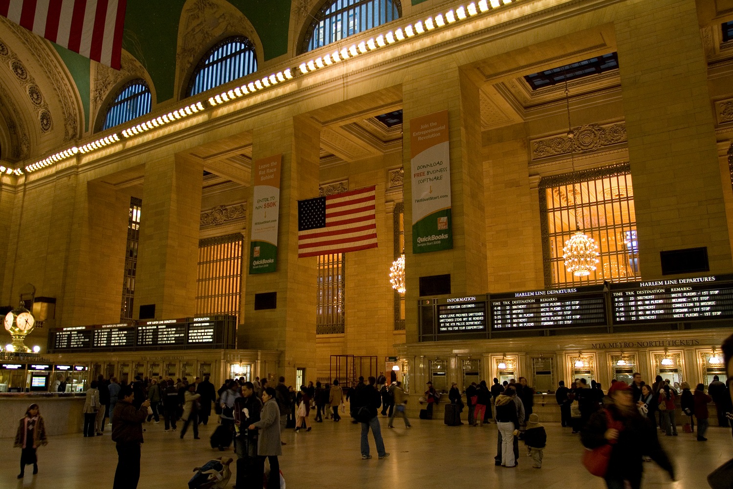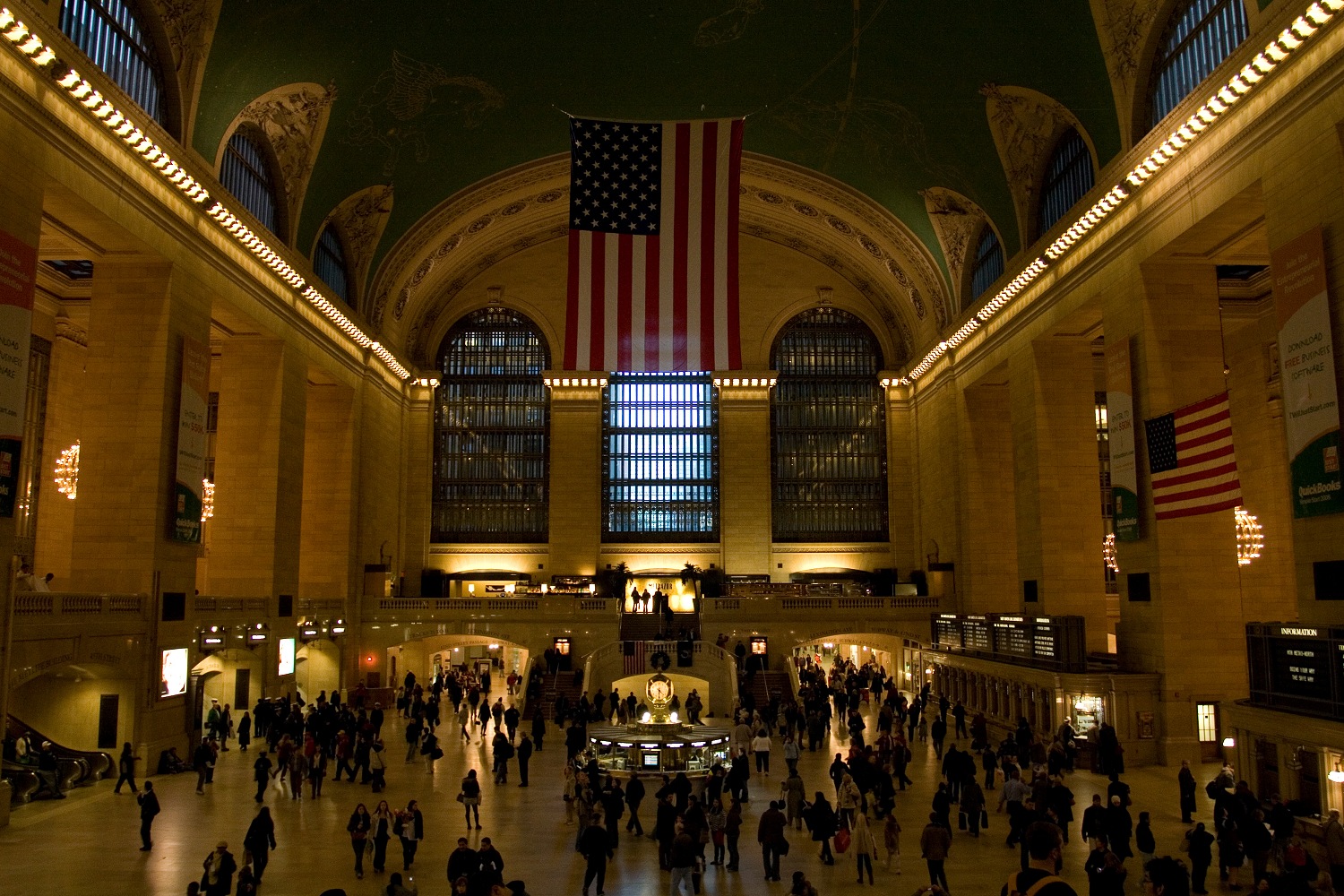 In der Herberge begegneten wir unserem Mitbewohner. Er wollte die Aussichtsplattform auf dem Rockefeller Building besuchen, hatte es sich beim Anblick der Warteschlange aber anders überlegt. Uns brachte das auf die Idee, zum Empire State Building zu gehen, das nicht weit entfernt lag und von dem aus wir uns an diesem schönen Abend eine tolle Sicht versprachen. Unterwegs kamen wir an der kathedralenhaften Grand Central Station vorbei, in die wir einen Blick warfen, bevor es weiterging.