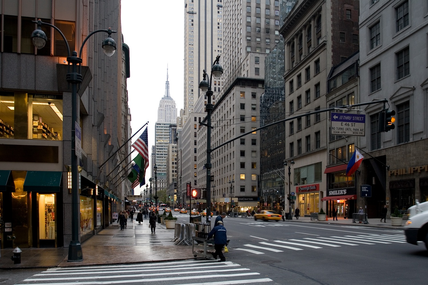 Am Madison Square Garden war ein großes Postgebäude, in dem S. sich erkundete, was Postkarten nach Deutschland kosten. J. und ich warteten draußen und betrachteten den Madison Square Garden und den Feierabendverkehr. Als wir weiter wollten, mussten wir an einer Fußgängerampel stehen bleiben; an sich nicht schlimm, wäre da nicht ein dampfender und stinkender Gully gewesen.