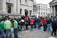 Nach nur rund zehn Minuten waren wir bereits am Trafalgar Square im Herzen der Stadt. Dort fand gerade zum Anlass des St. Patrick's Days am 17. März mitten auf dem Platz ein Konzert statt. Ein gemeinsames Besäufnis gehört offenbar dazu.