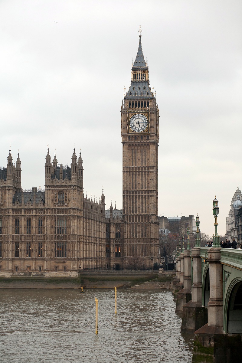 Das Wetter wurde immer schlechter, aber Westminster Abbey, in das ich gerne einen Blick geworfen hätte, war bereits für Besucher geschlossen. Was uns blieb, war ein Spaziergang über die Westminster Bridge und zurück. Dabei bekamen wir immerhin einen Dudelsackspieler zu sehen. Obwohl es windig war, lässt sich die Frage, ob er etwas darunter trug, nicht beantworten.