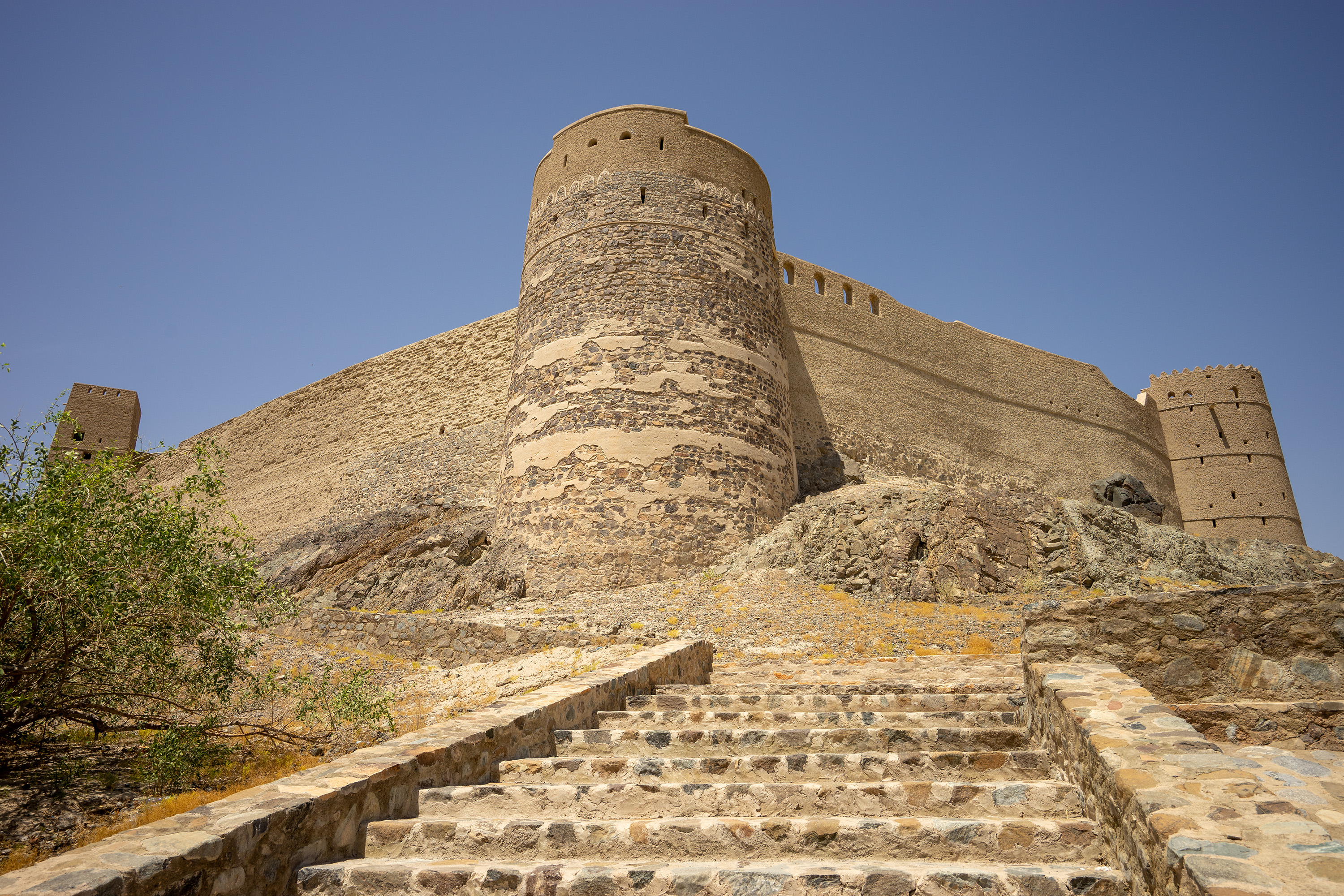 Der Rückweg führte mich zur gewaltigen Festung von Bahla aus dem 18. Jahrhundert. Sie wurde in den letzten Jahren in traditioneller Handwerksart behutsam saniert und trägt einen Welterbetitel der UNESCO. Außer mir waren keine weiteren Gäste zu sehen außer ein paar Fledermäusen. Wie zuvor brannte auch an jenem Tag die Sonne erbarmungslos auf den Wüstenstaat nieder. Laut der Einheimischen wurde der Oman gerade von einer außergewöhnlichen Hitzewelle getroffen, so dass es Ende Mai so heiß war wie sonst in einem heißen August. Abgesehen von Tassia und James begegnete ich im Oman überhaupt keinen Touristen.