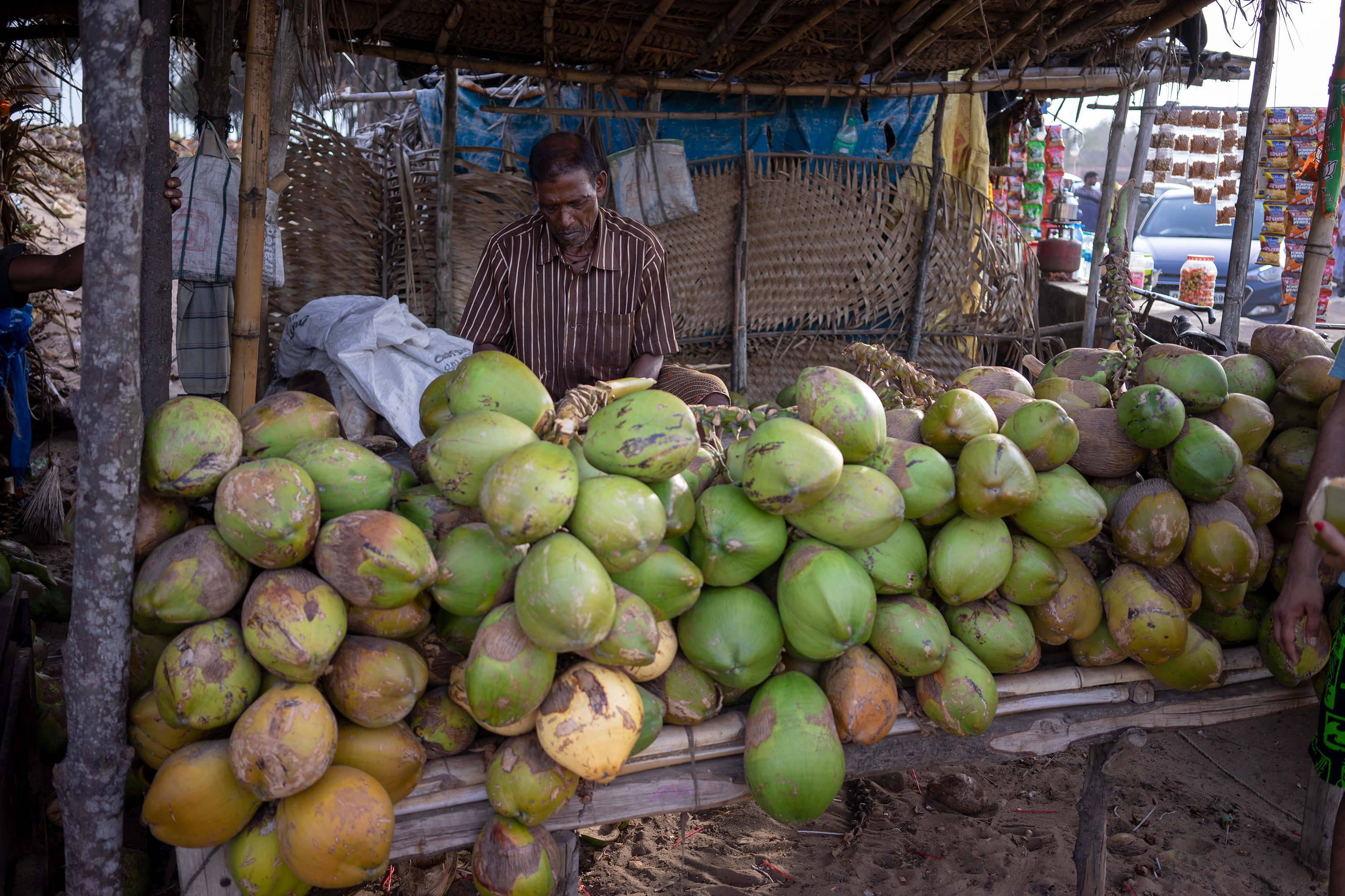 Von Bhubaneswar beträgt die Entfernung zur Küstenstadt Puri etwa 60 Kilometer. Nachdem ich am Geldautomaten indische Rupien abgehoben hatte, ließ ich mich von einem Chauffeur in seinem alten Tata nach Puri bringen. Auf dieser abenteuerlichen Fahrt kamen uns auf der Schnellstraße Geisterfahrer entgegen, am Straßenrand lagen zerfetzte Kühe und wir rasten mit einer solch hohen Geschwindigkeit haarscharf an Alten und Kindern in den Dörfern vorbei, dass ich vor Angst und Verzweiflung die Augen verschloss.
