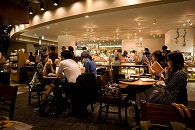 In einem benachbarten Hochhaus durchquerten wir mehrfach eine Fressmeile im Erdgeschoss, ehe wir mit dem Fahrstuhl eine Starbucks-Filiale im obersten Stockwerk aufsuchten. Es ging uns dabei nur vordergründig um Kaffee, da S. versuchte, mit ihrem Handy eine W-LAN-Verbindung herzustellen, wie sie bei Starbucks in Tokio kostenlos möglich ist — ich wollte endlich erfahren, wie das Champions-League-Finale zwischen Bayern München und Inter Mailand ausgegangen war!