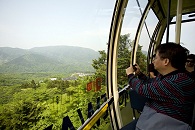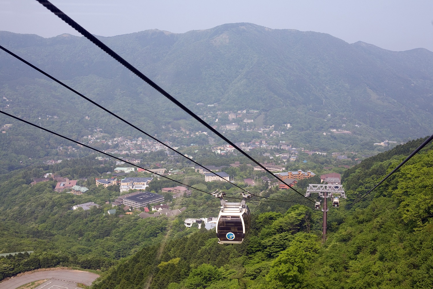 Wir fuhren zunächst mit einer Express-S-Bahn nach Odawara, wo wir auf dem Bahnsteig einen Fahrkartenautomaten suchten. Dabei sprach uns ein Mitarbeiter der Bahngesellschaft an, der, wie wohl beinahe jeder Japaner, im Grunde kein Englisch sprach. Mit Händen und Füßen erklärte er uns, worauf er im nachhinein sichtlich stolz war, dass wir weiterfahren und die Fahrkarten für die Hakone-Tozan-Linie und die Gondel auch ganz zum Schluss kaufen könnten. Wir stiegen in eine weitere S-Bahn um, die nach etwa 15 Minuten den Bahnhof Hakone-Yumoto erreichte. Von dort aus ging es mit der Hakone-Tozan-Linie gemächlich einen Berg hinauf. Ich hätte nicht gedacht, dass ein so steiles Gefälle auch ohne Seilband oder Zahnrad befahren werden kann. Oben an der Endstation Gora angekommen, waren wir immer noch nicht am Ziel. Nun mussten wir mit einer Seilbahn weiterfahren, um endlich in die Gondelbahn einzusteigen, die uns nach Togendai brachte.