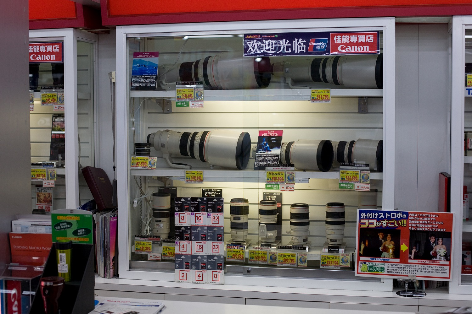 Da wir ohnehin gerade in Ginza waren, schauten wir noch einmal bei „Bic Camera“ vorbei. Das Ende meines Speicherplatzes in der Kamera war absehbar und S. wollte sich nach Mitbringseln umsehen. Speicherkarten waren aber mehr als dreimal so teuer wie in Deutschland, also begnügte ich mich damit, die Kameras und Objektive anzugrabschen.