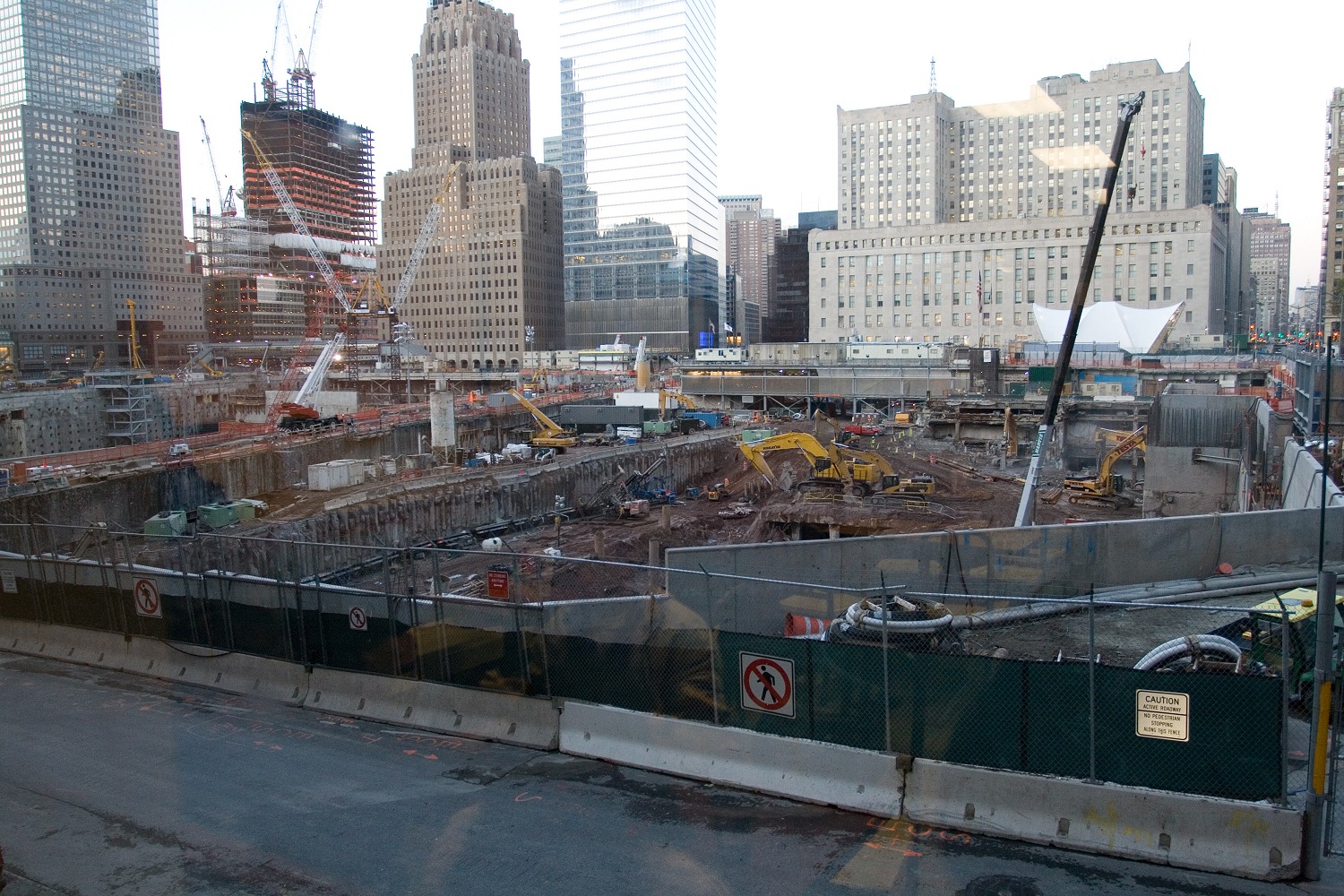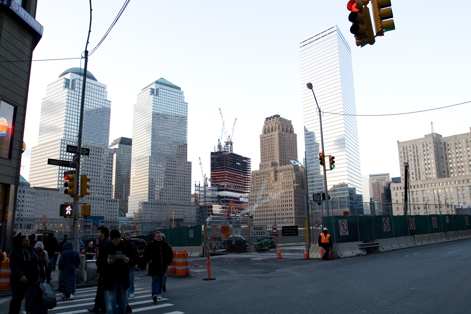 Wir fuhren danach nach Süden, nach Downtown. Dort besichtigten wir Ground Zero und staunten über die Ausmaße der Baugrube und die Größe, die die World Trade Center gehabt haben müssen, da uns selbst die viel kleineren Nachbargebäude riesig erschienen. Wir gingen beim direkt an der Baustelle gelegenen Burger King etwas trinken und konnten im ersten Stock von unserem Platz aus in die Baugrube des Freedom Towers blicken, der einer Festung gleichen wird und einen gewaltigen Sockel bekommt, um sicher zu sein vor Autobomben. Nicht umsonst wurde er schon vor Baubeginn „Fear Tower“ genannt.