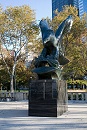 Bevor wir zur Brooklyn Bridge aufbrachen, beobachteten wir noch einmal die Parade und staunten über die Eichhörnchen, die es sogar auf kleinsten Grünflächen mitten zwischen den Hochhäusern gibt. Da eins, das in einer Mülltonne nach Essen suchte, sich beinahe anfassen ließ, war anzunehmen, dass es ihnen hier ganz gut gehen muss.