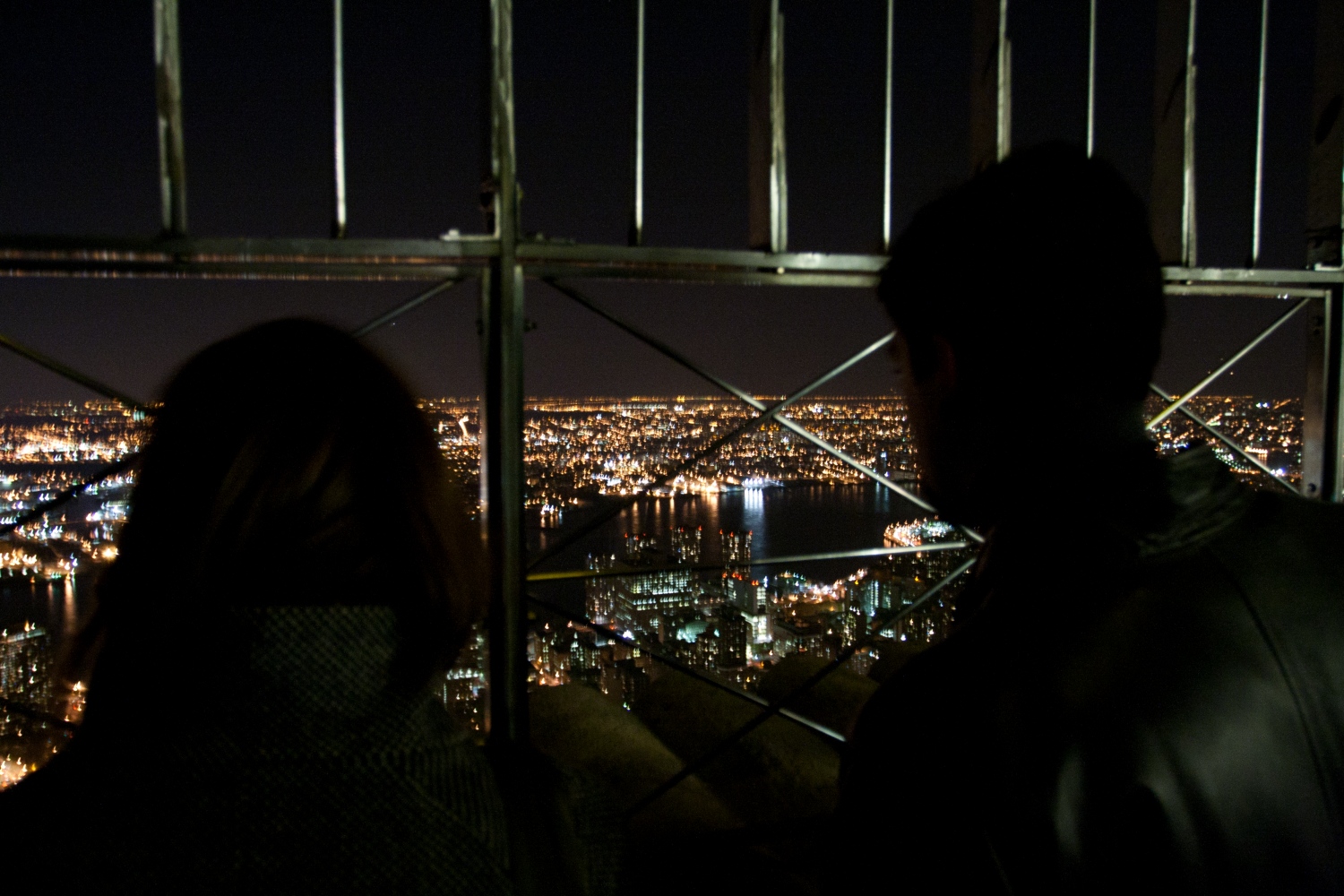 Am Eingang des Empire State Buildings war eine Tafel angebracht, auf der stand, man müsse momentan 40 Minuten warten, um auf die Aussichtplattform zu kommen. Dauern sollte es dann allerdings über eine Stunde. Vor dem Kartenschalter warteten S. und J. so lange, bis ich unsere Karten gekauft hatte. Mir fielen unbemerkt fünf Dollar runter, die eine Frau mit kurzen, blond gefärbten Haaren aufhob und mir zurückgab: „Dir sind fünf Dollar runtergefallen!“ Woher wusste sie, was für ein Landsmann ich bin? Sie kam aus Berlin und hatte eine Woche vorher zu Hause eine texanische Freundin zu Besuch gehabt, mit der sie das Wochenende in New York verbringen wollte. Als ich ihr erzählte, wir hätten nur 129 Euro pro Flug bezahlt, wurde sie neidisch. Meine Verabschiedung erwiderte sie mit einem Winken und verschwand schneller, als ich der Dame hinter dem Schalter 54 Dollar für unsere drei Karten geben konnte.
