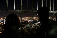 Der Fahrstuhl brachte uns zügig bis wenige Stockwerke unter die Aussichtsplattform. Dort hieß es wieder Schlange stehen und in die Kamera schauen, die ein aufgedrehter Verkäufer unaufgefordert auf uns richtete. Für das Foto, auf dem J. und ich — S. ließ sich nicht ablichten — aussahen wie zwei unzurechnungsfähige Penner, hätten wir später 25 Dollar abdrücken müssen.