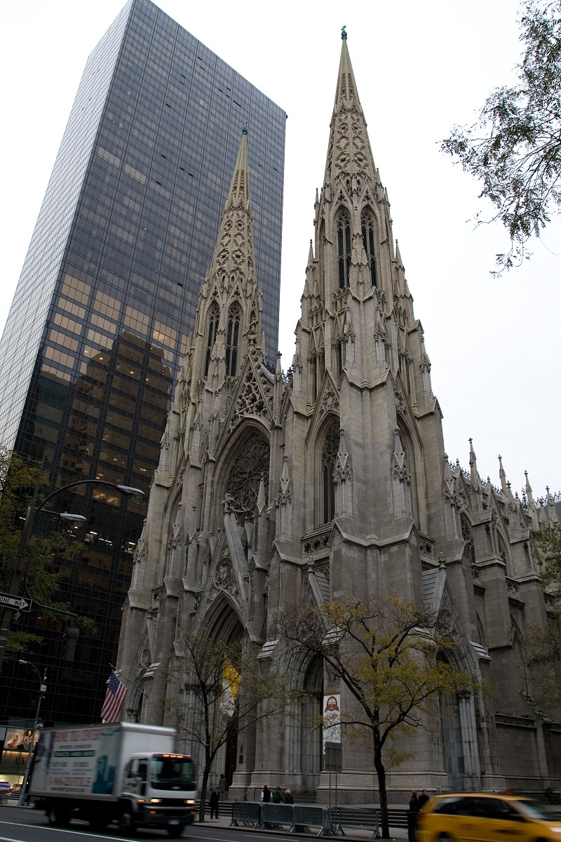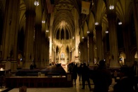 Montag war es zum Glück wärmer als Sonntag. Wir wunderten uns über die Stille nebenan am Times Square, da doch Wochenbeginn war. Nach dem Aufstehen gingen wir diesmal gleich nebenan frühstücken. Ich aß „Three eggs white on a plain“ und beschloss, am nächsten Tag lieber einen Bagel mit Frischkäse zu wählen. Unsere ersten Schritte führten uns wie am Tag zuvor nach Norden. Wir besuchten St. Patrick's Cathedral, in der gerade ein Gottesdienst stattfand und wir deshalb am Eingang stehen blieben; für ein paar Eindrücke reichte es aber.