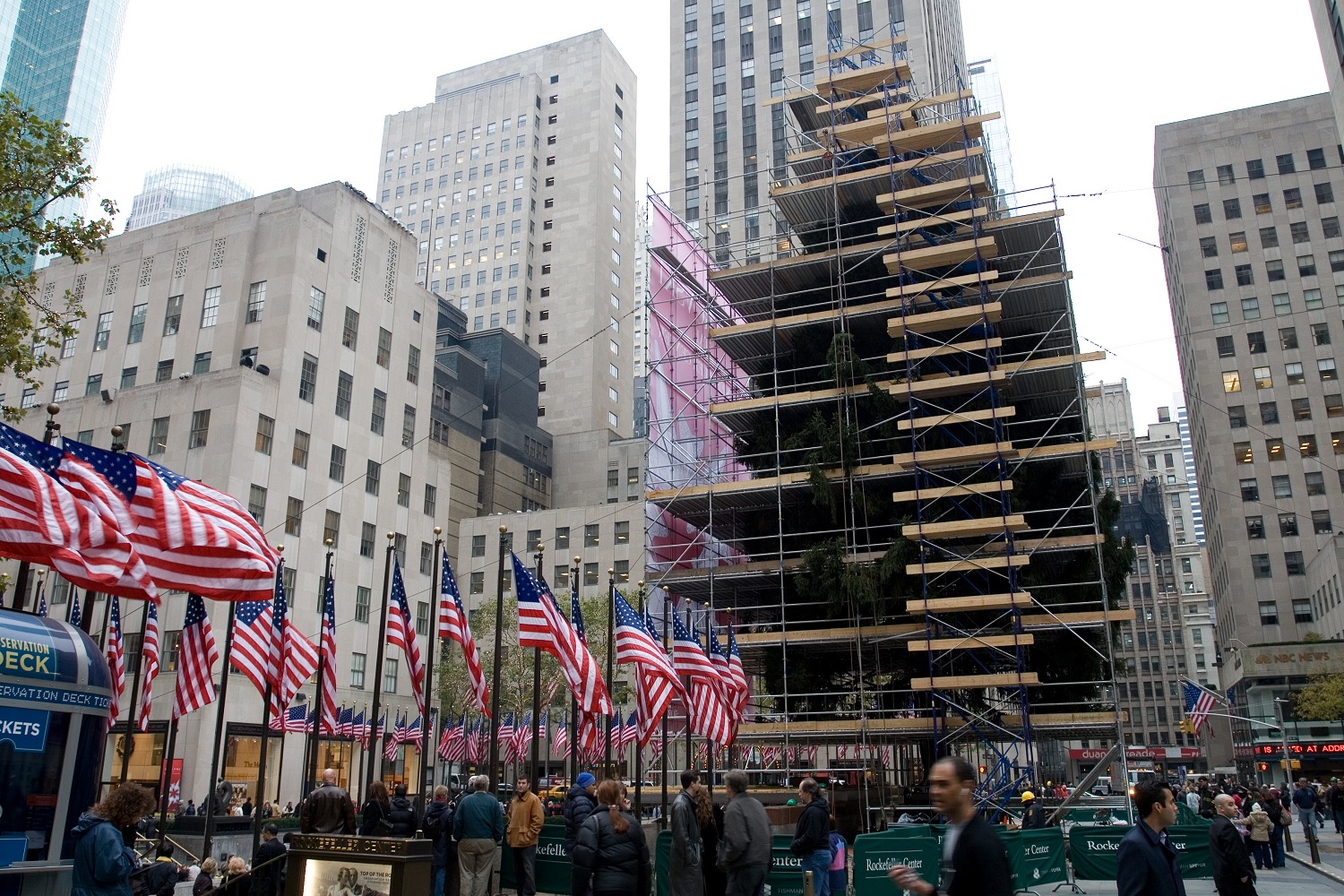 Mittlerweile hatten wir Ideen, wie der Tag für uns weitergehen sollte. J. und ich wollten gerne ins Museum of Modern Art, das MoMA, was S.' aber zu teuer war. Sie wollte lieber Klamotten kaufen gehen. Unsere Wege trennten sich vor dem H&M am Rockefeller Center. Leider mussten J. und ich angesichts der Schlange vor dem MoMA feststellen, dass es wenig Sinn machte, an diesem Tag das MoMA zu besuchen. Wir liefen daher schnell zu H&M zurück und hinderten S. daran, in Kauflaune zu geraten. Unsere Pläne verschoben wir auf Mittwoch. Wir gingen zurück und beobachteten die Eislaufbahn auf dem Rockefeller Plaza, die gerade präpariert wurde. Als ich das Rockefeller Building von unten aus fotografieren wollte, wurde ich von einem studentisch aussehenden Kerl mit Rockefeller-Pulli angesprochen: „You can take your pictures from the Observation Deck, if you like!“ — „Thanks, but I'll be there in a few days anyway.“ — „That's great! See you then!!“