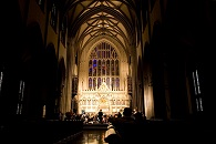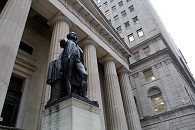 Wir fuhren weiter zum Financial District, gingen aber vorher noch ein paar Delis essen. In dem Geschäft wurde das halbe Kilo Delis vom Buffet ab 15 Uhr für 3,99 statt 5,49 Dollar verkauft. Es war 14.58 Uhr. Wunderbar! Zur Sicherheit warteten wir noch fünf Minuten und stürzten uns dann auf das fettige Essen. Ich kapitulierte bald und verteilte meine Reste an J. und S. Nach einer kurzen Verdauungspause gingen wir runter zur Wall Street, an deren Spitze die schöne Trinity Church steht. Darin probte ein Orchester und ich glaubte, „Atmosphères“ von György Ligeti zu erkennen.