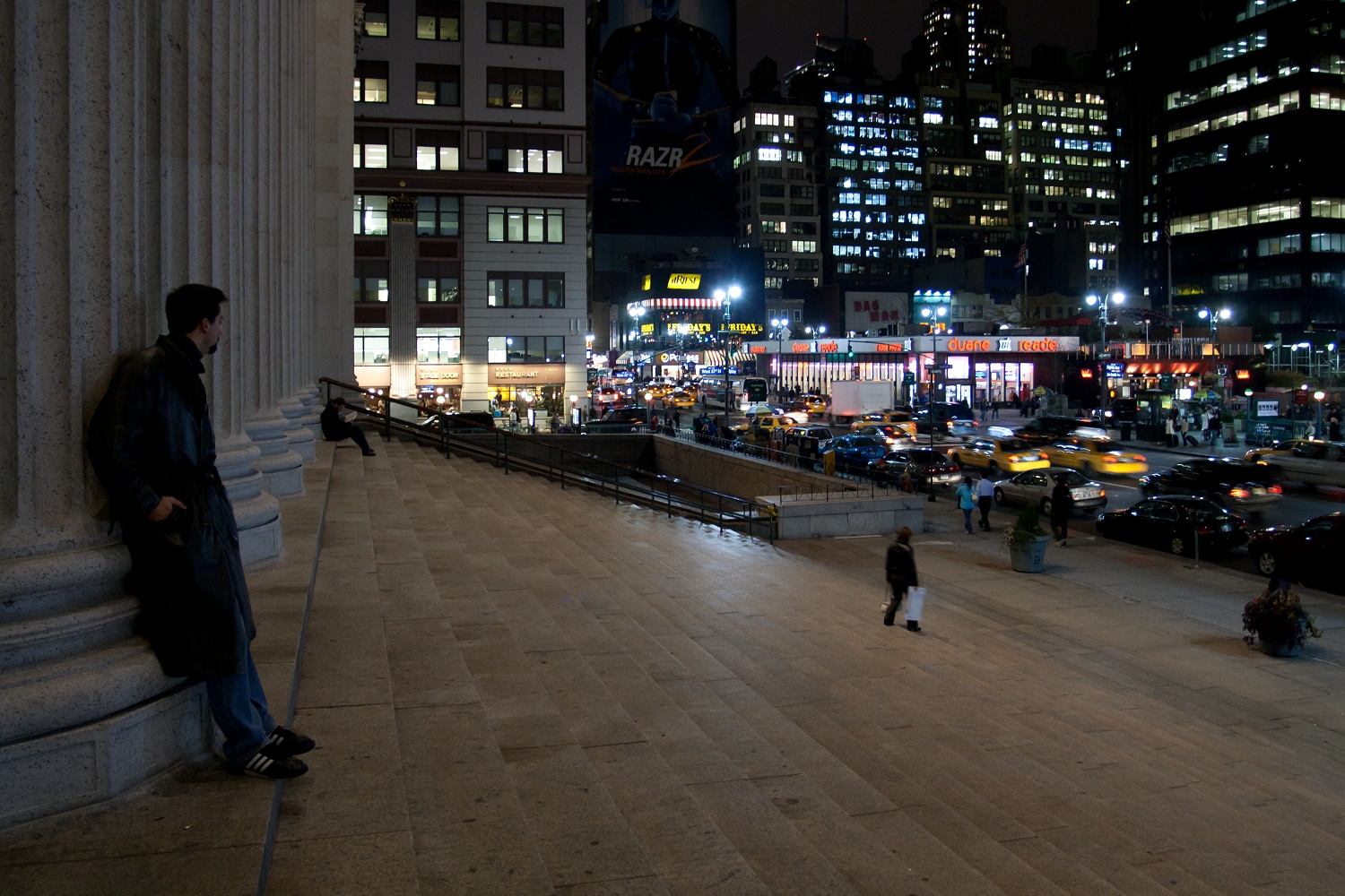 Am Madison Square Garden war ein großes Postgebäude, in dem S. sich erkundete, was Postkarten nach Deutschland kosten. J. und ich warteten draußen und betrachteten den Madison Square Garden und den Feierabendverkehr. Als wir weiter wollten, mussten wir an einer Fußgängerampel stehen bleiben; an sich nicht schlimm, wäre da nicht ein dampfender und stinkender Gully gewesen.