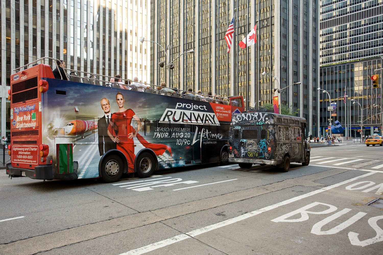 Bis 17.45 Uhr, also bis zum kostenlosen Eintritt ins Guggenheim-Museum, war es noch etwas Zeit. Zunächst tranken wir Frappuccinos bei Starbucks, was bei der Hitze denkbar angenehmer war als beim letzten Besuch in New York, als ich nicht wusste, um was für ein Getränk es sich handelt und es blindlings bestellte, obwohl es draußen fror. Eine Busrundfahrt ließen wir ausfallen, da der Verkäufer 44 Dollar dafür haben wollte — zuviel für etwas, was man auch mit öffentlichen Verkehrsmitteln erledigen kann.