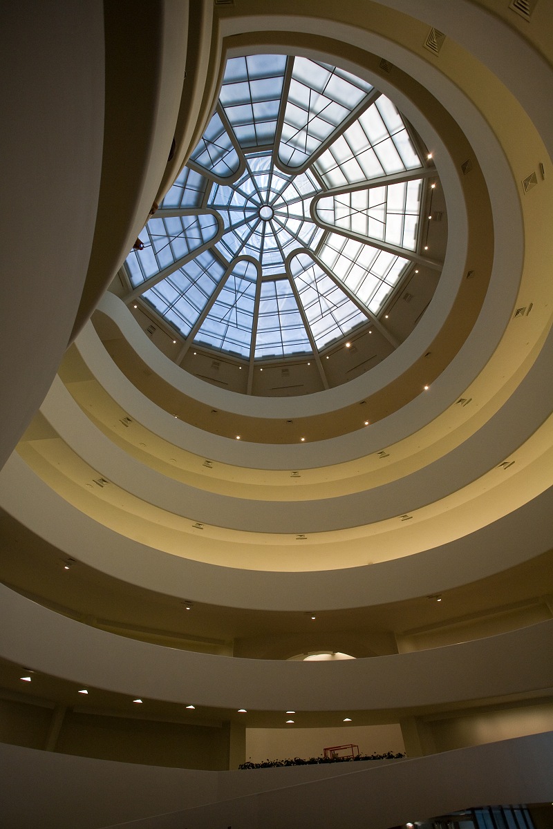 Die Schlange vor dem Museum ging bis um den Block herum und wir befürchteten das Schlimmste, standen aber nur wenige Minuten an. Eine Gruppe Mädchen hinter uns machte sich zu ihrer — und zu J.s und meiner — Unterhaltung einen Spaß daraus, sich gegenseitig an die Oberweite zu fassen. Da wir so viel bezahlen durften, wie wir wollten, gaben wir dem Kassenwart zehn Dollar für uns. Leider war das Fotografieren bis auf einen kleinen Fleck im Erdgeschoss verboten. Enttäuschend waren auch die Absperrungen, die durch laufende Renovierungsarbeiten aufgestellt worden waren. Zu sehen bekamen wir nur die unteren beiden Stockwerke, also nur einen Bruchteil der ansonsten ausgestellten Kunst. Was wir zu sehen bekamen, war dafür äußerst erlesen: Erinnern kann ich mich an Cézanne, Picasso, van Gogh, Rousseau, Marc, Pissarro und Kandinsky, der für einige Jahre in München lebte und dem eigentlich eine Sonderausstellung im Guggenheim gewidmet ist.