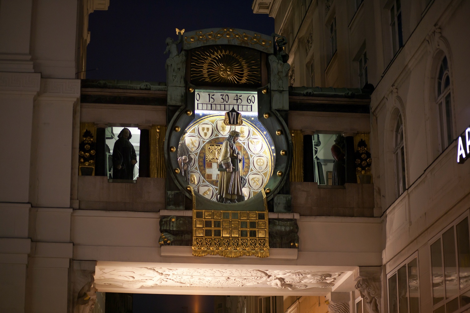 Ist man einmal in Wien, muss man auch eine „Eitrige mit Buckel und Schiss“, wie sie im Volksmund heißt, essen, also eine Käsekrainer mit Senf. Meine war allerdings mit Ketchup und im Baguette und hat ganz hervorragend geschmeckt. Am Hohen Markt befindet sich auch die Ankeruhr, eine große Spieluhr der ehemaligen Anker-Versicherung. Zuletzt ging es noch einmal über den Stephansplatz und schließlich zurück ins Hotel.