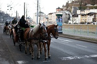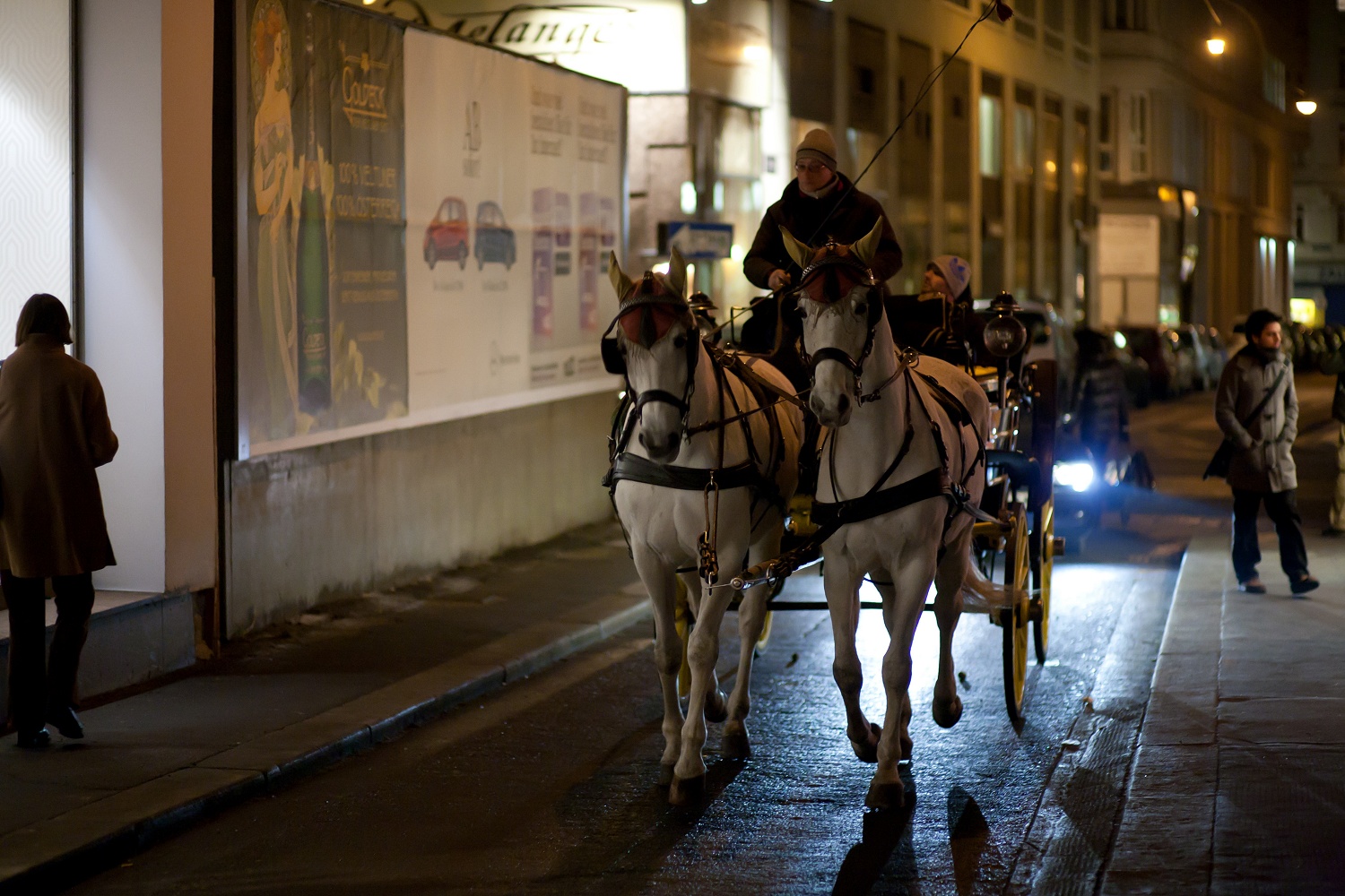 Wieder aufgewärmt fuhren wir mit der U-Bahn zur Herrengasse, um von dort aus die höchst eindrucksvolle Reitschulgasse entlang zur Albertina zu gehen. Inmitten dieser eng bebauten Straße gibt es einen Pferdestall und man muss aufpassen, vor Staunen nicht von einer der vielen Kutschen überrollt zu werden.