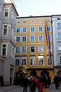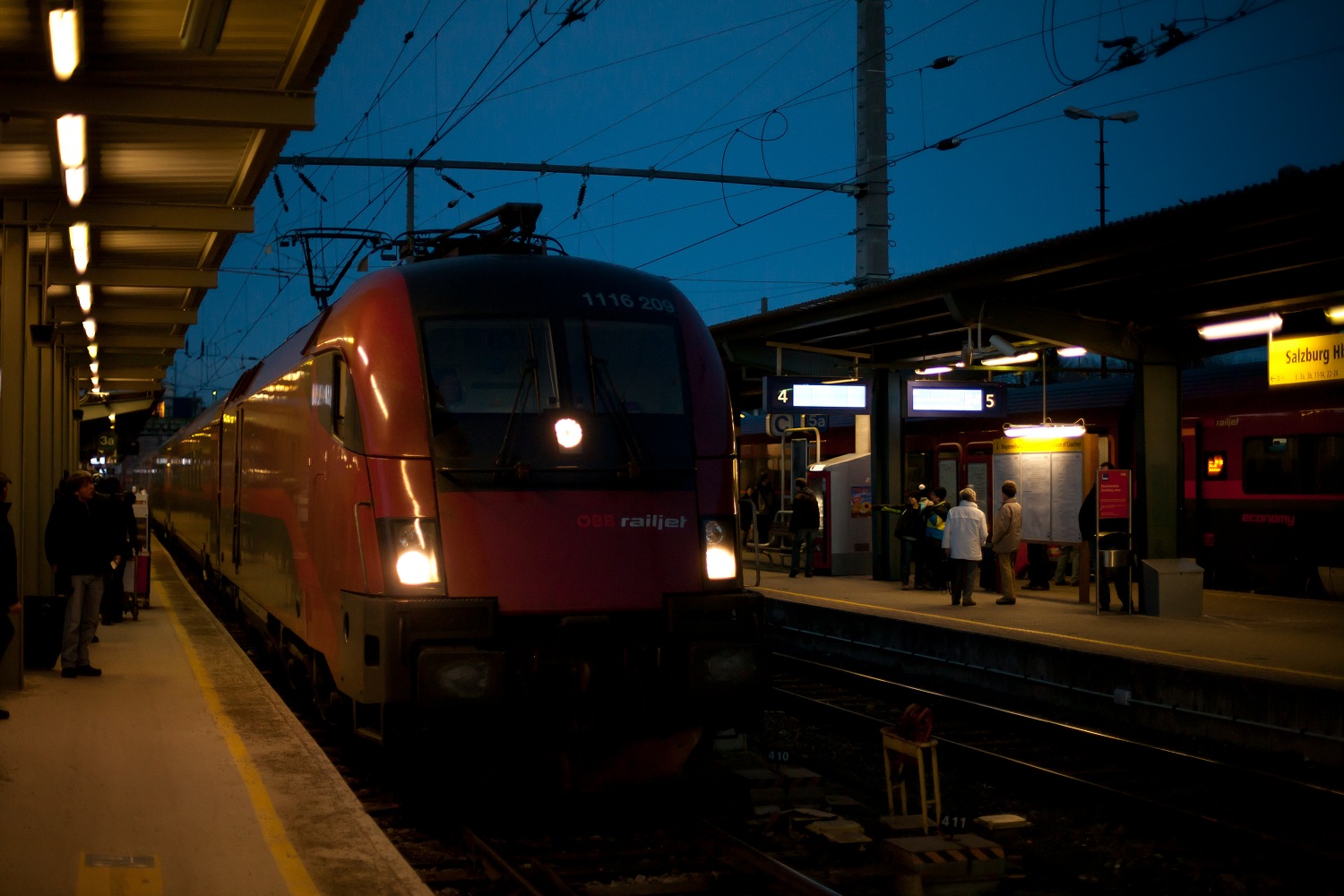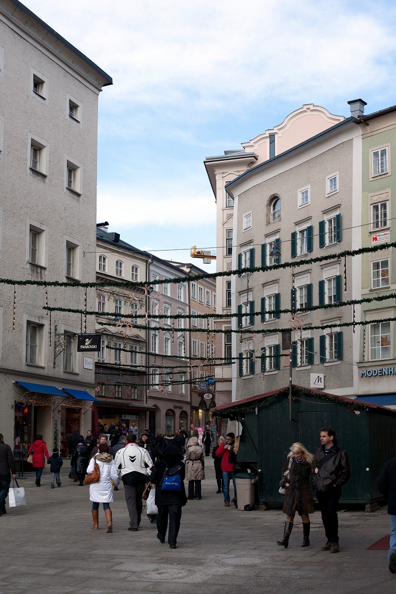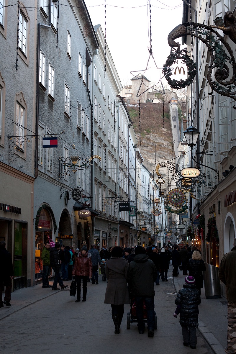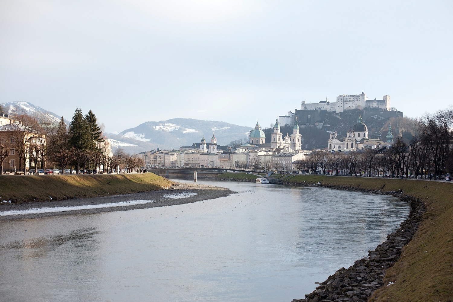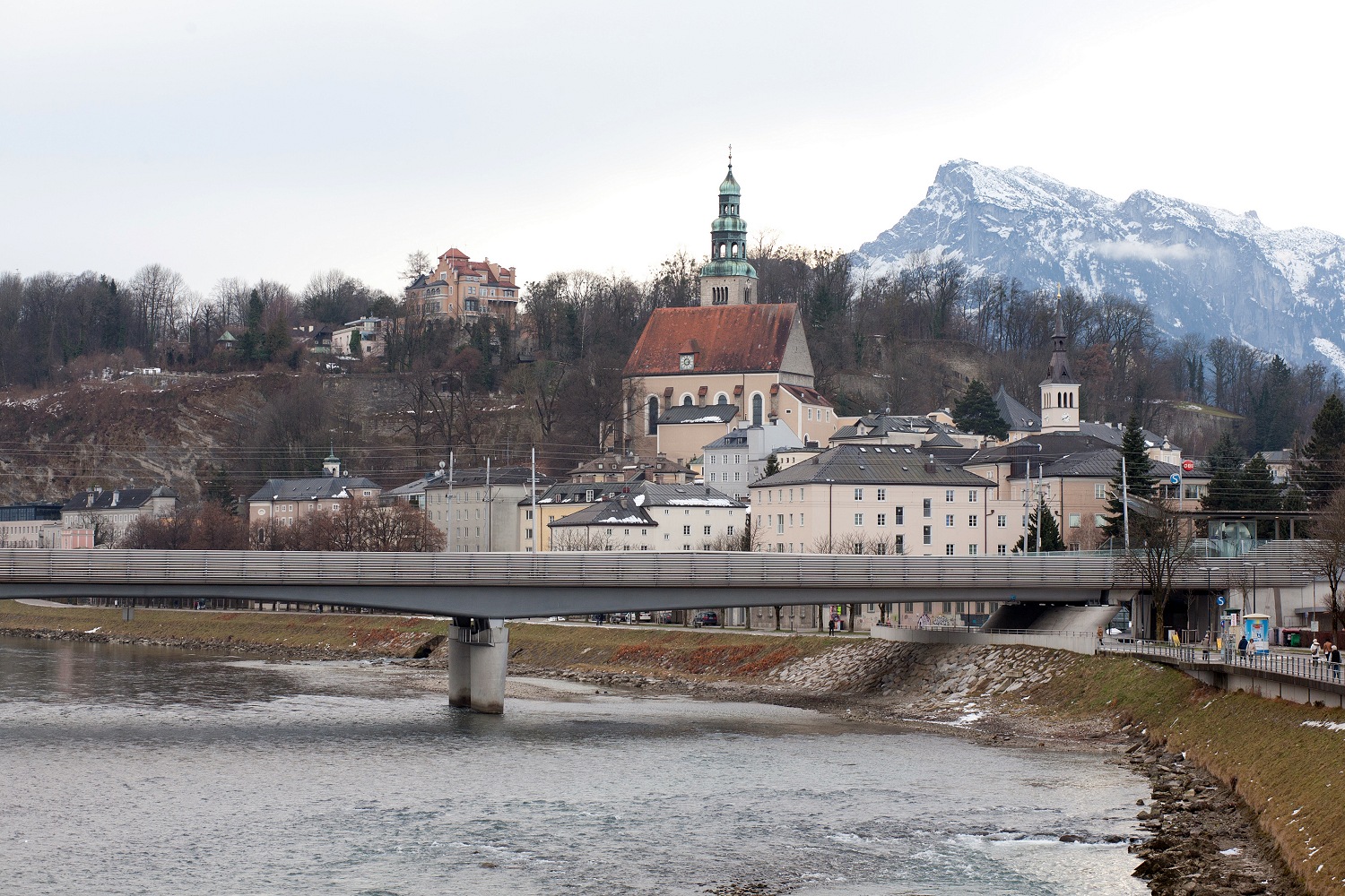 Am nächsten Morgen fuhren wir mit dem Railjet um 10.15 Uhr wieder in Richtung Westen. In Salzburg, das wir nach rund drei Stunden erreichten, hatten wir einen vierstündigen Halt eingeplant. Gerade genug, um durch die Gassen der Altstadt zu schlendern. Unser Weg führte uns entlang der Salzach, vorbei an wunderschönen Altbauten und einem grauen Riesen, den man wohl dem Brutalismus zuordnen kann. Vorbei ging es natürlich auch an Mozarts Geburtshaus in der Getreidegasse 9.